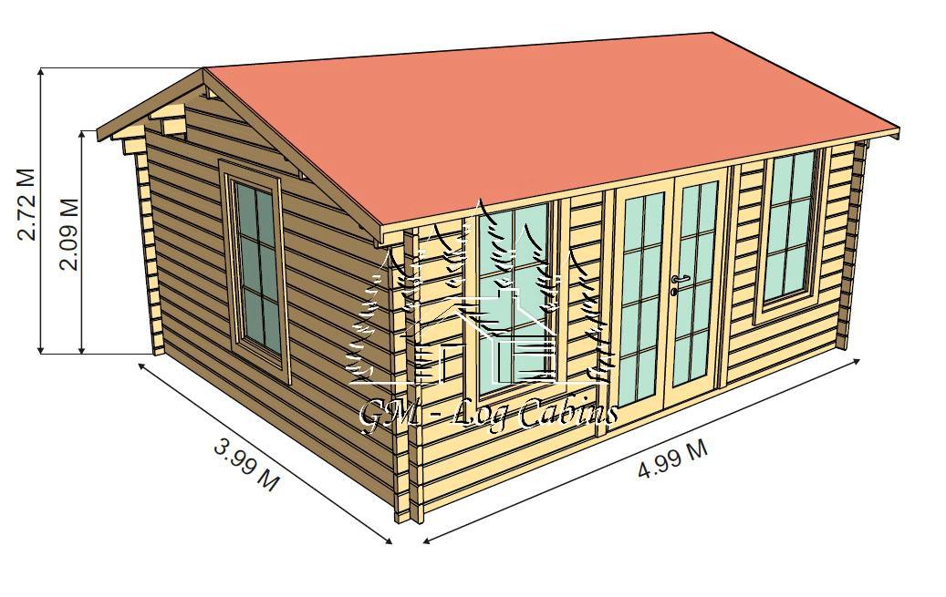 - Grossura da madeira – 44mm, duplo T&G, madeira de abeto/pinho nordico;
