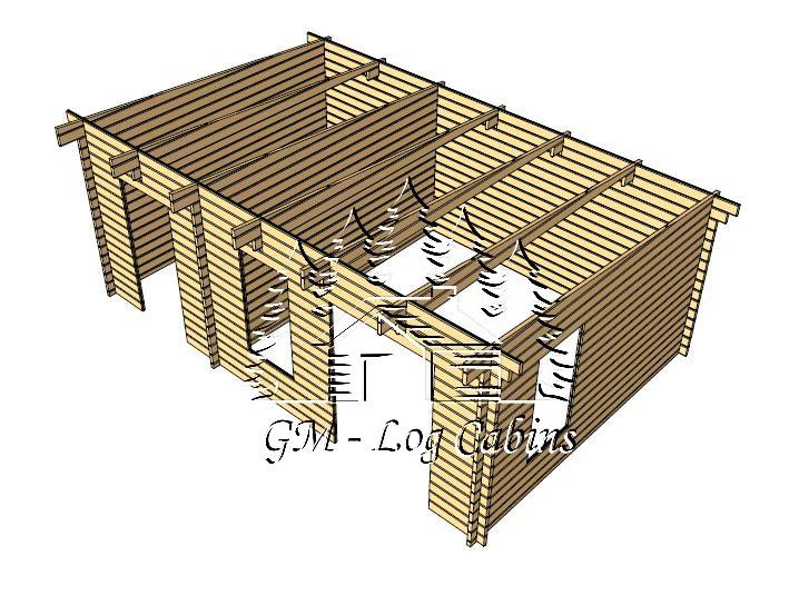 - Troncos de parede – 44mm, duplo T&G, madeira de abeto/pinho;